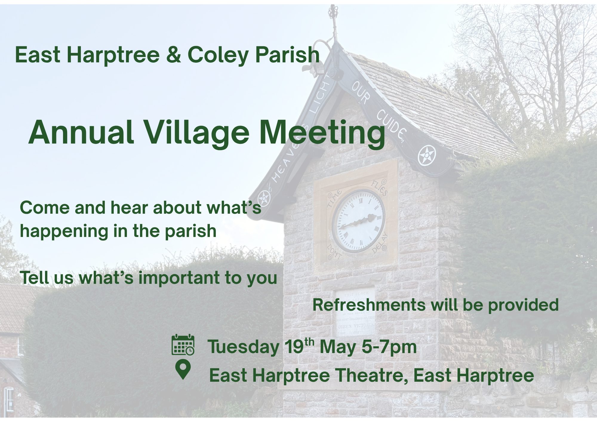 All welcome at this years meeting for residents of East Harptree and Coley
